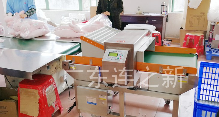 以下是源康毛绒玩具有限公司使用连新牌压缩型金属检测机使用现场: