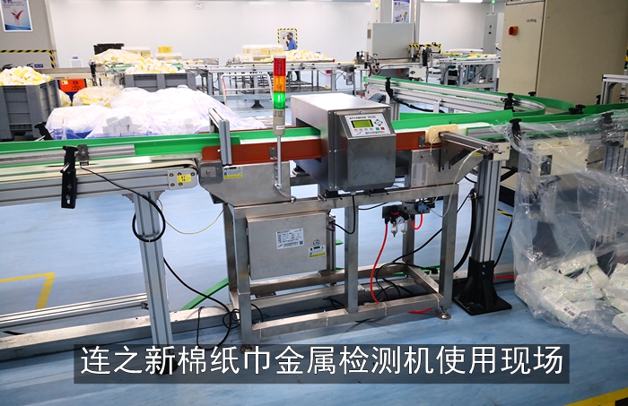 湖北天门某健医疗用品集团棉质纸巾生产线采用连之新推杆式金检机,某健医疗集团是以生产和销售医用敷料及一次性医疗卫生用品,其中包括医疗护理类、伤口护理类、家庭护理类以及自主研发的全棉水刺无纺布四大系列产品。具有国内最完善的医用纱布系列、绷带系列、医用棉、化妆棉系列、全棉无纺布、化纤无纺布系列等生产线,也是国内唯一一家从原材料到最终成品的生产、灭菌、销售和服务的专业化集团公司。在淘汰之前购买的其他品牌金检机后选择了连之新金检机,以提高产品品质和竞争力。