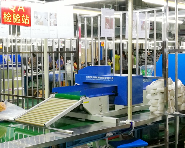 新款液晶屏型流水线上检针机 鞋厂使用现场: