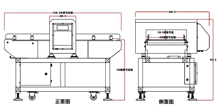 机器的龙门口径大小直接影响到机器的灵敏度性能。即:口径越小,所对应的检测精度(即灵敏度)就越高,用户可根据检测精度要求改变产品包装大小以及选购较小的检测口径,可获得更佳的检测效果。