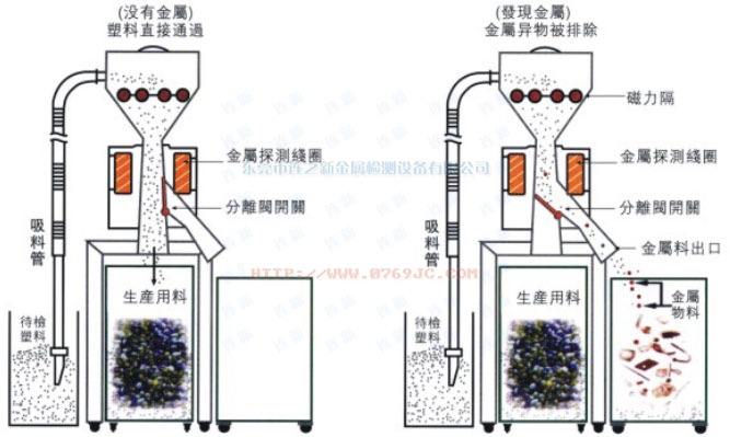 1.专为粉末状及颗粒状产品设计的在线检测装置,由管道自由下落通道及探测器和排除装置完美结合组成。具有高灵敏度与高抗干扰能力。