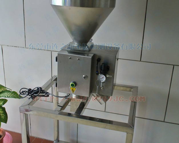 原料从料斗或送料器自由下落进入金属分离器,如果没有金属杂质,原料会直接通过金属分离器流向下端的出料口。如果检测器检测到原料中含有金属,那么控制器立刻启动分离板将金属物和部分原料一起导向侧面的排料口,然后分流板迅速恢复至正常的位置,分流板速度可调,金属分离器的检测精度也可根据生产需要调节,最小可检测并分离出Φ 0.2mm的金属颗粒。