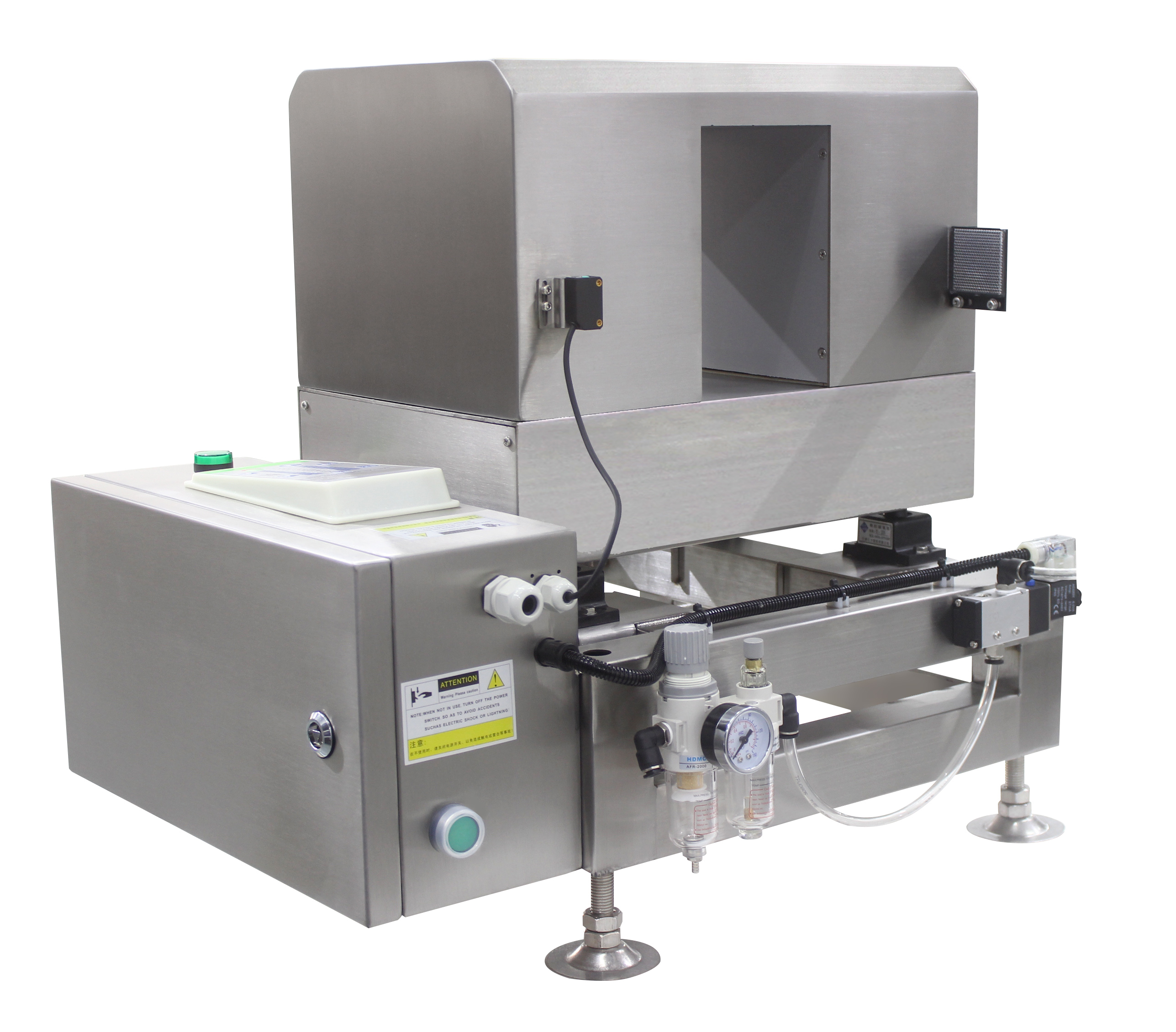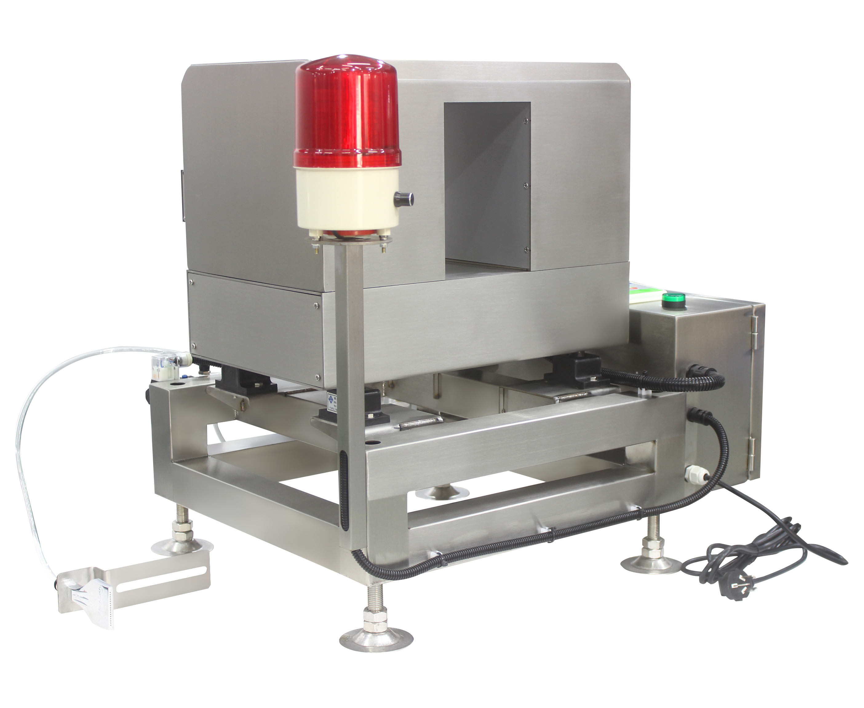 4.具有防漏检功能。当有多个金属信号通过时,仪器会自动检测信号次数,执行机构在动作时不会产生遗漏。具有输送带防止跑偏装置。