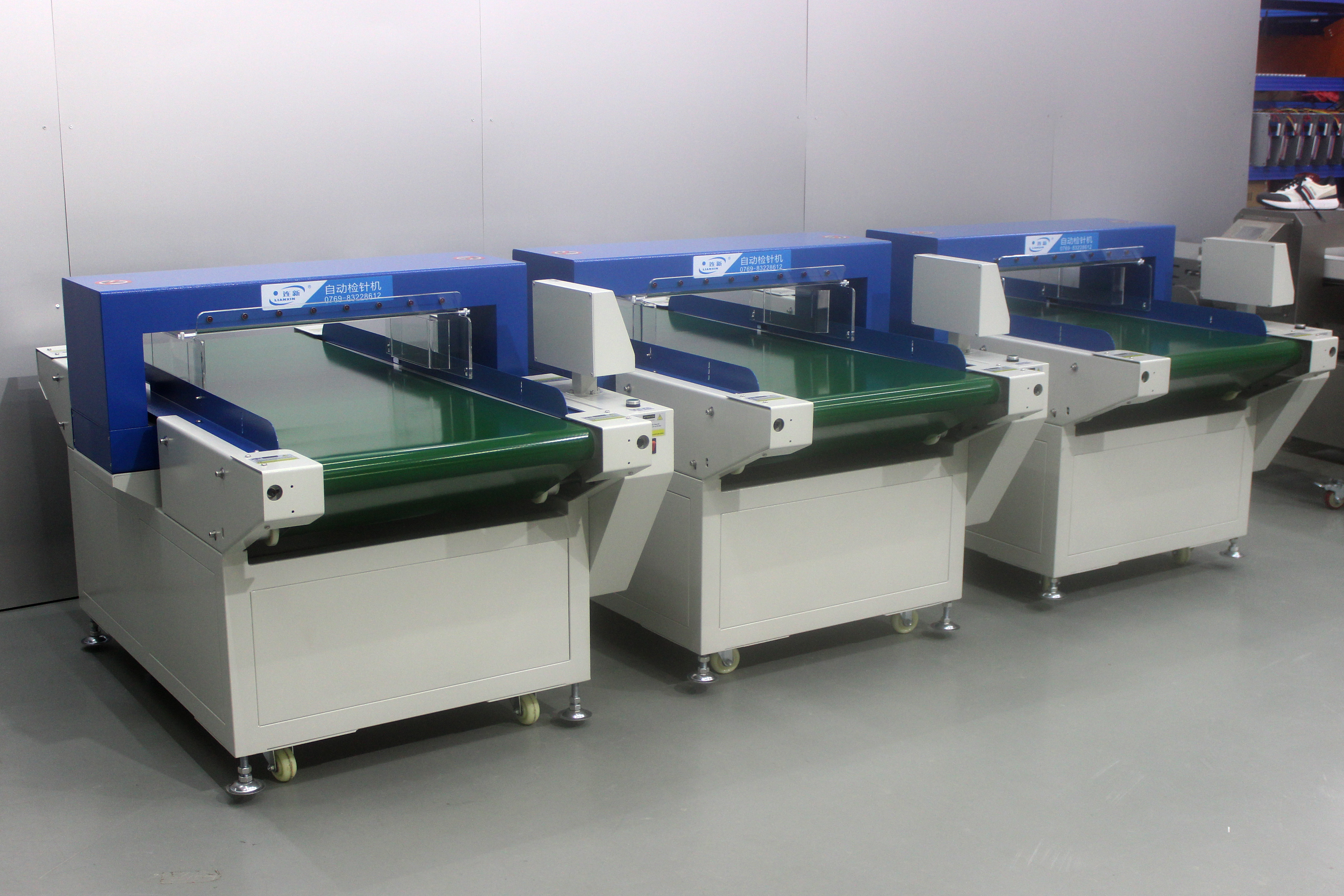 过检针:五金钮扣、五金拉链、日字扣、珠链、胸针等服装手袋金属辅料过检针机。